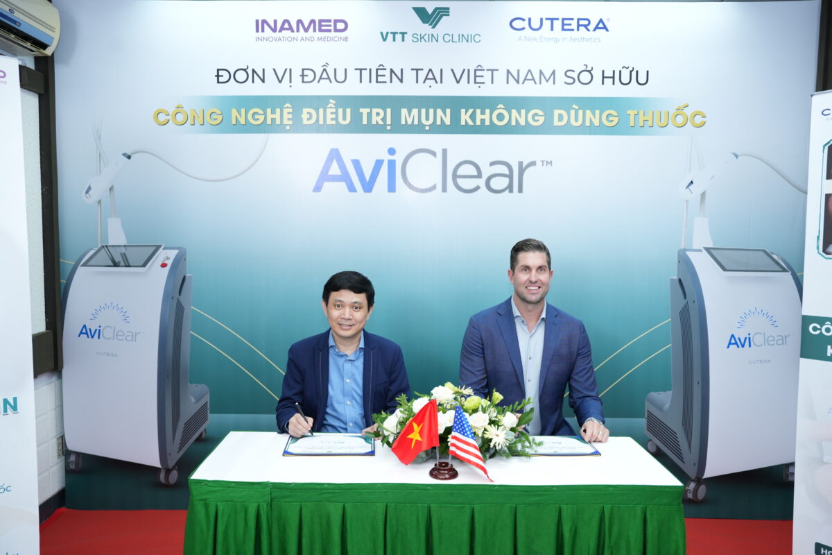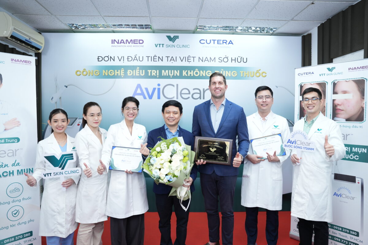 Ngày 12/8/2025 đánh dấu một cột mốc quan trọng trong lĩnh vực da liễu Việt Nam, khi PGS.TS.BS Văn Thế Trung – chuyên gia đầu ngành trong điều trị các bệnh lý về da – chính thức ký kếtchuyển giao và ứng dụng công nghệ trị mụn thế hệ mới AviClear tại VTT Skin Clinic. Đây là công nghệ đầu tiên và duy nhất tại Việt Nam có khả năng tác động trực tiếp đến tuyến bã nhờn – nguyên nhân gốc rễ hình thành mụn– mà không cần sử dụng thuốc.